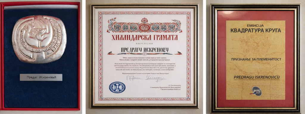 Tokom godina, Predrag Iskrenović dobio je brojna priznanja za plemenitost, humanost i nesebično zalaganje: