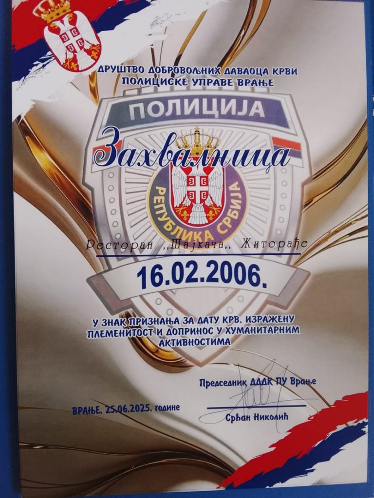 • Više zahvalnica Policije Republike Srbije za izuzetnu humanitarnu aktivnost